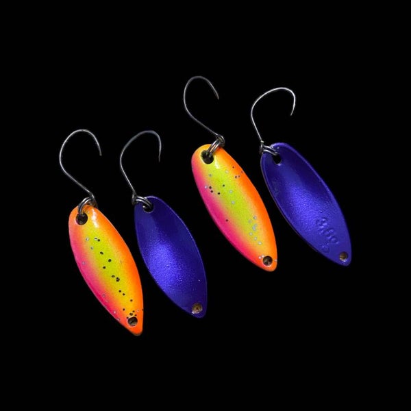 Der Scarlett Spoon ist ein schmal-oval länglich gestalteter Forellenbllinker, welcher leicht gewölbt ist. Durch diese Form eignet er sich für das monotone Steady-Retrieve in stillen oder moderat fließenden, nicht zu flachen Gewässern. Den Scarlett gibt es in drei Gewichtsklassen 2,2g /2,8g und 3,5g Die exzellent ausgearbeitete Gewichtsverteilung bewirkt ein extrem windstabiles Flugverhalten und zielgenaues Spotten. Somit könnt ihr mit ihm viele Situationen am Gewässer abdecken. Ausgestattet ist der Scarlett mit einem hochwertigem Einzelhaken. Diese Spoons werden per Hand lackiert.