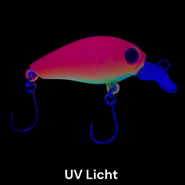 Der Wobbler hat eine intensive Aktion und kann auch verschiedene Arten eingesetzt werden. Egal ob am kleinen Bach auf kapitale Salmoniden oder im Sommer auf raubende Barsche. Schwimmende Forellen Crank Wobbler mit coolen, fängigen UV-aktiven Farben. Mit Rasseln im Körper. Länge 4cm, Gewicht 3.8gr