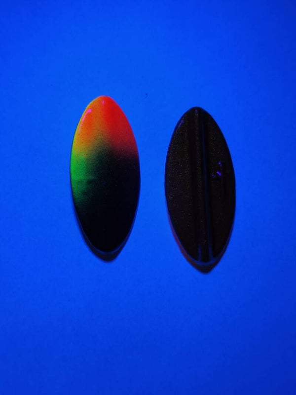 Die Durchlaufblinker sind mit einem zentralen Schnurkanal ausgestattet, mittels dem sie sich auf die Angelschnur fädeln lassen. Anschließend folgt eine Perle als Knotenschutz, ehe ein Einzelhaken oder ein Drillingshaken angeknotet wird. Die Durchlaufblinker besitzen ein sehr gutes Wurfverhalten und ein attraktives Laufverhalten, wodurch sich weite Würfe erzielen lassen und verschiedene Gewässertiefen nach Salmoniden abgesucht werden können.Einzelhaken mit Wirbel und eine Glasperle sind im Lieferumfang enthaltenen.